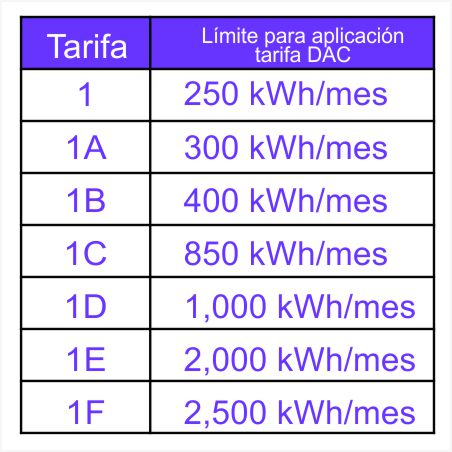 El costo por KWh consumido en tarifas DAC varía dependiendo del mes y de la región del país pero en todo caso es superior a los 3 pesos por KWh. El cargo mínimo establecido para la Tarifa 1F equivale a un consumo de 25 kilowatts-hora mensuales aun cuando la CFE no haya registrado consumo de electricidad en la lectura del medidor. El servicio de electricidad o gas nos aporta bienestar.